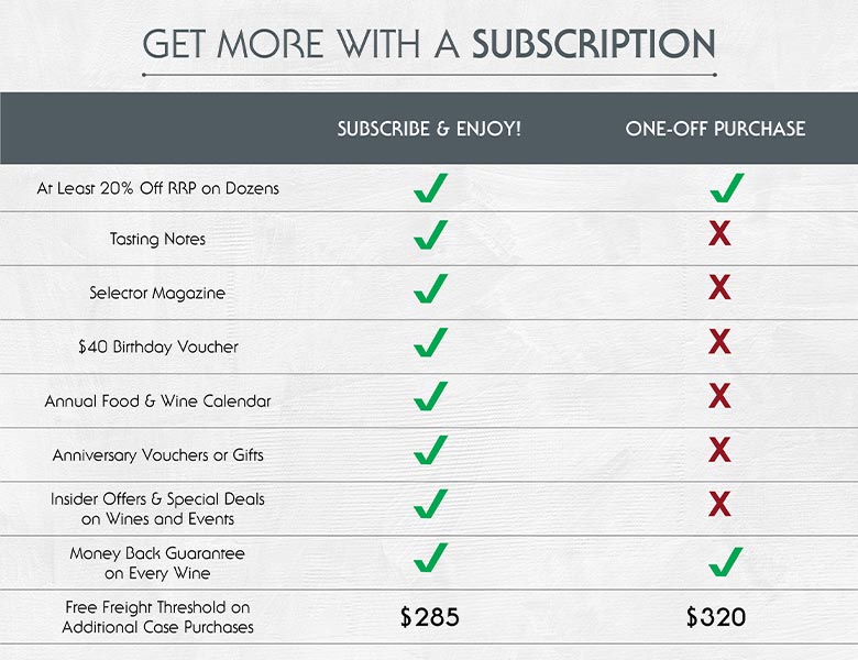 - - Premium Wine + Extras – Receive tasting notes, food pairing suggestions, Selector magazine content, bonus offers, and exclusive discounts.